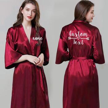 Kimono de seda de imitación para mujer, bata larga de dama de honor, con logotipo personalizado, con nombre y fecha de boda
